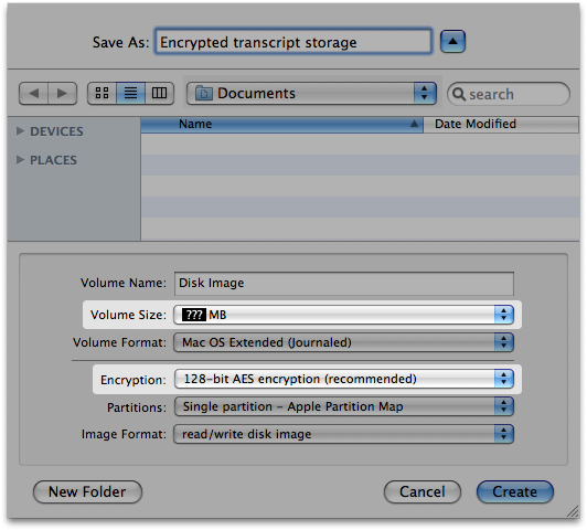 - Use Disk Utility to create an encrypted disk image at least twice that size.